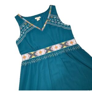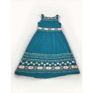Sundance Dress Women's Size 12 Teal Aztec Embroidered Sleeveless Midi Boho Sheer