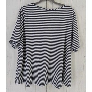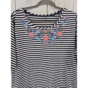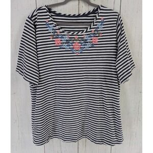Croft Barrow Plus Size 2X Womens Blue White Striped Embroidered Short Sleeve Top