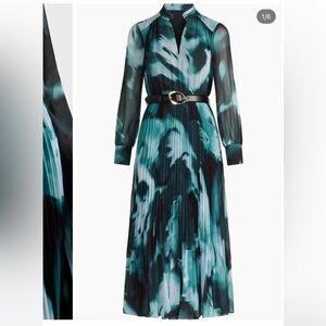 This is an Ever New Skyla abstract print long sleeve pleated midi dress. Perfect for any occasion, this dress features a stunning pattern and a flattering silhouette.