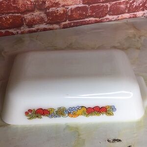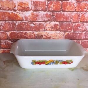 Vintage White Fruit Design Anchor Hocking Fire King 441 Casserole Dish