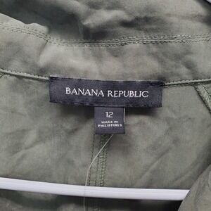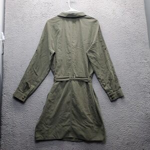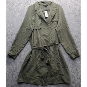 Banana Republic Trench Dress Womens 12 Green Roll Tab Sleeve Belt Waist Notch