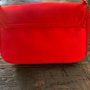 Chic red crossbody bag with a bold bow. Perfect for any occasion.