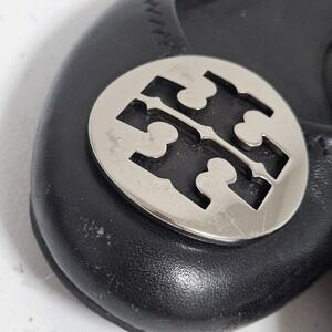 Tory Burch Minnie Travel Black Leather Ballet Flats Women's 7 Silver Logo GUC **