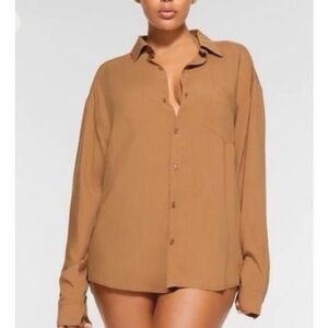 NWT Skims Cover Ups Long Sleeve Button Up Shirt in Ochre - XL