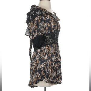 Free People Lucie Mini Boho Black Combo Short Dress NEW 2 Floral Fairy