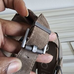 Nicole Jahida Tan Suede Leather Buckle Open Toe Sandals Size 7.5