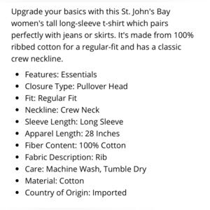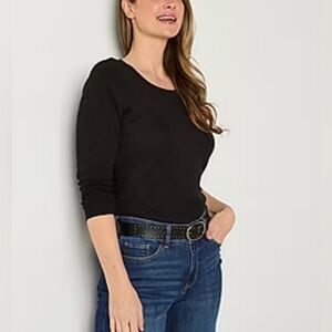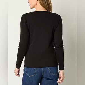 St John’s Bay Long Sleeve Essential Tee Crew Neck Top. Size 1X. Black