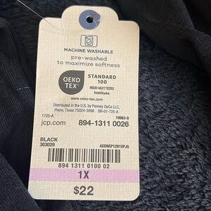 St John’s Bay Long Sleeve Essential Tee Crew Neck Top. Size 1X. Black. P2P 22”. Length 28”. 100% cotton