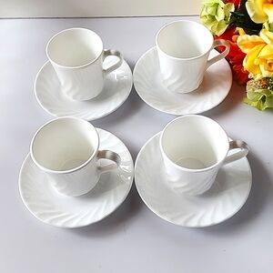 8 piece of Corelle/Corning Swirl Pattern 4 Saucers & 4 Coffee/Tea Mugs. USA