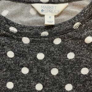 Market & Spruce 2X Women’s 3/4 length sleeve knit black polka dot sweater shirt
