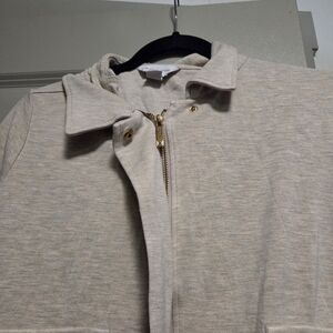 Stylish cream jacket. Features front pockets. Perfect for layering.