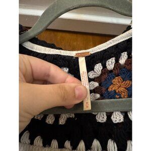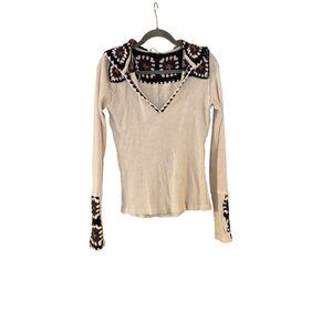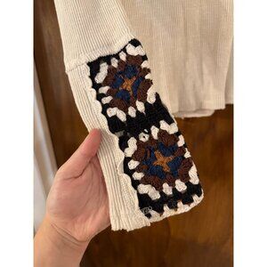 Free People Bohemian Cream Long-Sleeve Top Thermal Crochet Hood & Cuffs Size M