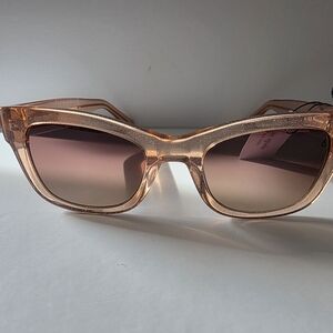 Chic Kate Spade New York sunglasses in a rose-gold glitter frame with soft gradient lenses. Square silhouette with subtle sparkle that catches the light beautifully — fun but still polished.