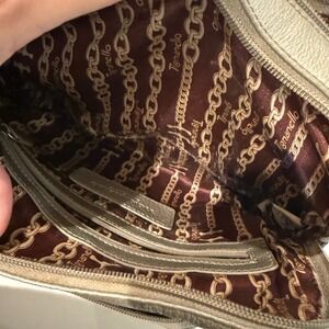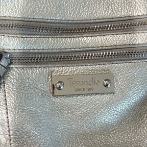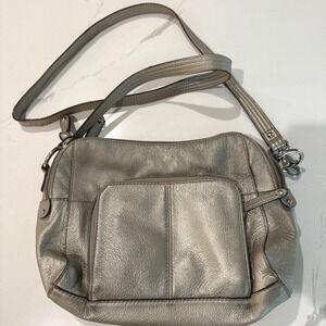 Tignanello Silver Metallic Leather Crossbody Shoulder Bag Purse Built in Wallet