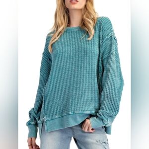 Zenana Outfitters Fuchsia Pink Mineral Wash Long Sleeve T shirt With Thumb Hole