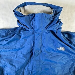 Keywords: North Face, raincoat, waterproof, windbreaker, outdoor, hiking, camping, travel, athletic, activewear, durable, hooded, blue