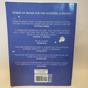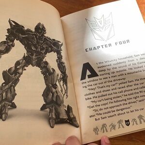 Update: adding in a Transformers Chapter book my son has agreed to let go (see last few pics “The Quest for the Allspark) I would suggest these suit ages 7+ for level of reading difficulty. Younger audiences will enjoy the graphics/pictures and being read to. Both pre-loved by us and show natural creasing, knocked edges and a few dog eared corners. Only flaw to note is that I had to mend two pages inside the “Allspark Almanac”. Mending pictured (on the Optimus Prime pages). Please feel free to request measurements you may need or send questions you have before purchasing.