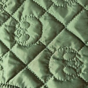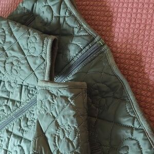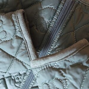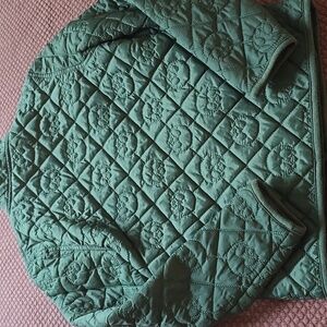 Stylish green quilted jacket for kids. Features a full zip front and side pockets.