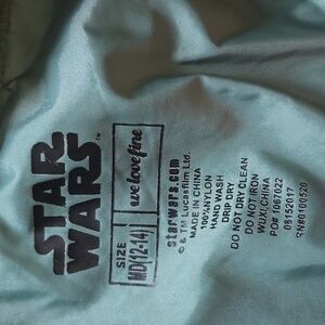 This delightful Star Wars thin puffer jacket was purchased for a Star Wars enthusiast It was loved! Needs a new life. Still good condition. Minor wear at the cuffs, and a loose string or two but overall very nice.