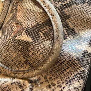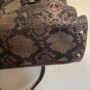 Stylish Michael Kors tote with snake print. Perfect for any occasion. Spacious and elegant design. Absolutely beautiful no signs of wear except on the handles I added several pictures