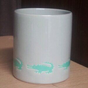 Enjoy your morning coffee or tea in this unique Waechtersbach Alligator Crocodile Gator coffee cup ceramic mug. The mug features a colorful design with an alligator theme, making it perfect for any occasion. Whether you prefer hot or cold beverages, this mug is suitable for both. Made in Spain, this original Waechtersbach mug is a great addition to your collection of dinnerware and serveware. The set includes one coffee cup and is perfect for alligator lovers or collectors. Add a touch of fun to your kitchen or office with this Waechtersbach Alligator Gator coffee cup.