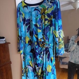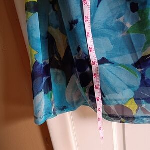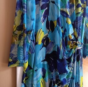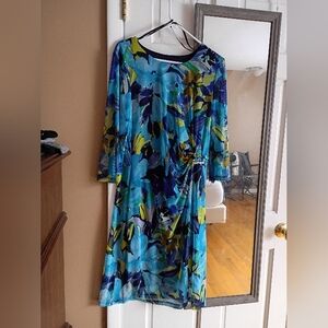 Kate and Lily Womens Sz 14W Green/Blue Floral sheer long sleeve Dress
