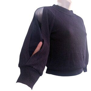 Midnight Blue Sparkle Knit Top | Sheer Sleeve Slits | Size S | NWT