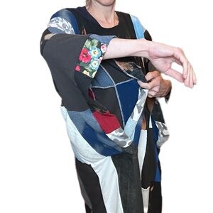 Patchwork bleached tunic dress handmade upcycle one size raw hem neckline