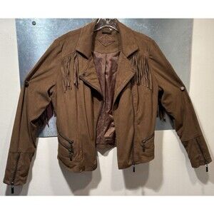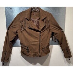 JouJou Faux Suede Leather Fringe Asymmetrical Zip Motorcycle Jacket Size Large