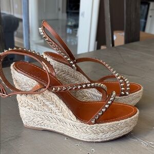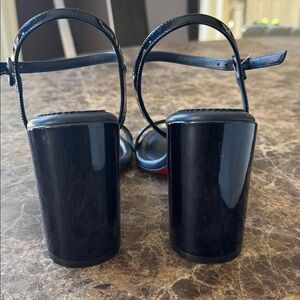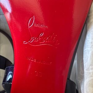 Christian Louboutin miss Jane block heel patent sandal pumps blue zaffiro sz 38