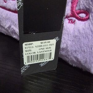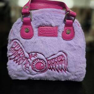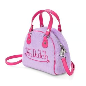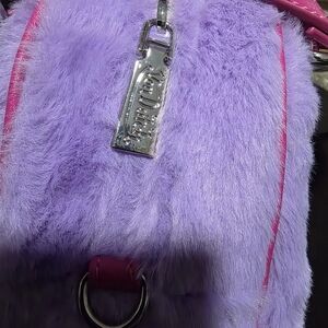Stylish and trendy, this fuzzy Von Dutch bag features a vibrant pink and purple design. Perfect for adding a pop of color to any outfit.