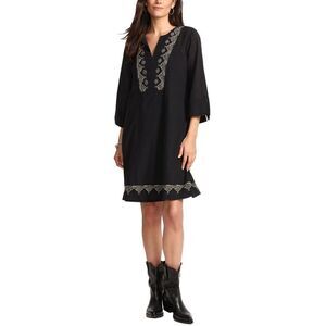 About the brand: Eclectic, Boho vibes with a vintage flare. Dress in black beauty Approximately 37.5in from shoulder to hem Measurements taken from a size small and may vary slightly by size. Design details: Split V-neckline, 3/4 sleeves, slip-lined, princess seaming 100% cotton Machine wash cold Imported