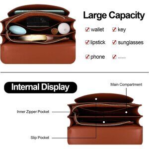 LARGE CAPACITY: This handbag different pockets. Spacious enough to store your daily essentials and keep your belongings organized. Can fit perfume, wallet, phone,cosmetics, and so on.