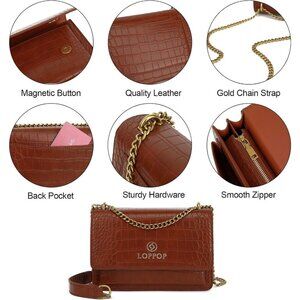 LL LOPPOP Small Classy Leather Crossbody Purse Top Handle Satchel Handbag Brown