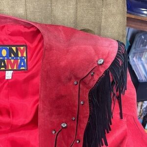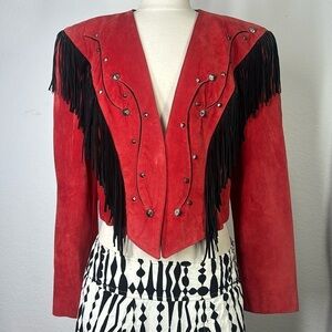Tony Lama America red leather and suede fringe studded jacket vintage