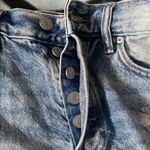 PacSun Distressed High Rise Light Blue Wash Jean Shorts