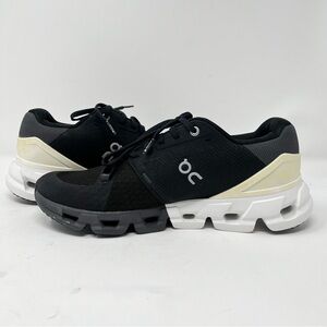 Dynamic black and cream shoes with innovative design. Ideal for active lifestyles. On Cloudflyer 4