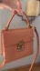 Chic Louis Vuitton crossbody top handle bag in peach color with signature embossed monogram. Features gold tone hardware and added unbranded charm detail. Crossbody strap is unbranded and detachable. Painted vernis leather. Ideal for stylish outings. Pairs well with jeans and blouse for a casual look, or with a flowy dress in the spring! Tiny enough to not be bulky, and large enough to hold all the essentials! Has locking mechanism, use notch to lock and unlock.