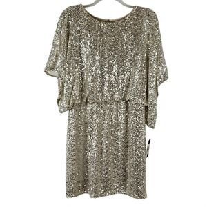 Jessica Howard Short Dolman Sleeve Boat Neck Sequin Mesh Blouson Dress NWT Sz 14