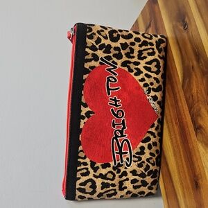 Brighton leopard print cheetah animal print red heart love canvas pouch cosmetic bag makeup case travel organizer accessory gift valentines day designer pouch coach kate spade vera bradley dooney and bourke juicy couture betsey johnson luxury pouch chic bohemian glam trendy stash bag jewelry pouch small clutch
