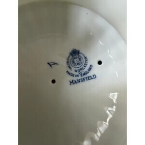 Classic Royal Worcester Mansfield pattern tea set featuring elegant blue floral decoration on a creamy white ground, fluted bodies, and gilt accents. A timeless English design that displays beautifully.