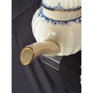 Great condition. This teapot does not have an interior lid stop, resulting in a loose fitting lid. The lids sits poperly but should be held in place when pouring. Ideal for display or careful use.