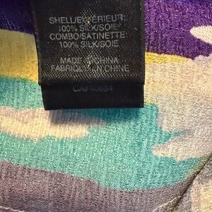 Marc by Marc Jacobs silk blouse with a colorful abstract print and bright pink lower panel.