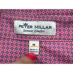 Peter Millar Summer Comfort Men's Short Sleeve Pink Geo Print Polo Shirt - M
