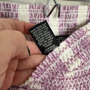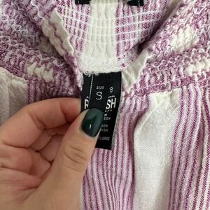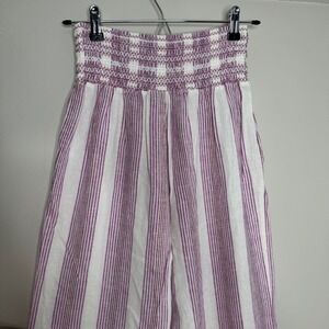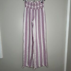 Keywords: REWARD, Striped Pants, Smocked Waist Pants, Wide Leg Pants, Linen Blend Pants, High Rise Pants, Boho Pants, Casual Pants, Summer Pants, Vacation Pants, Resort Wear, Flowy Pants, Women's Pants, Size S Pants, Purple Striped Pants