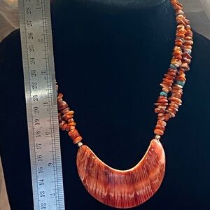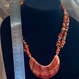 Jay King Spiny Oyster Shell/Turquoise Chip Necklace Crescent Pendant silver