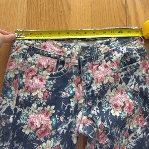 Seven7 Floral Print Skinny Jeans Denim Blue Pink Womens Size 4 Flowers Pants