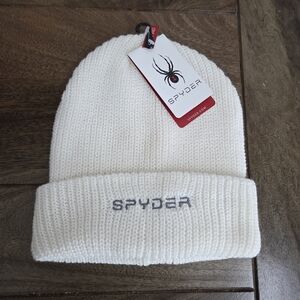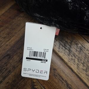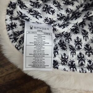 Stylish winter hat with ear flaps by Spyder. Features a black quilted exterior (black fabric is a little shiny - see photos). Hat has white faux fur accents on the both the outside and inside of the hat. Perfect for those snowy days.