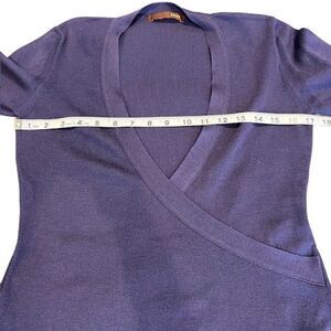 Bally Silk 2 PC Sweater Twin Set Violet Sleeveless and Long Sleeve Size 8 (44). Excellent condition Deep violet purple blue color. First piece is a sleeveless turtleneck fitted top. Second piece is a pullover wrap look long sleeve sweater, cuffed sleeves. See photos for details and measurements. luxurious and stretchy for comfort. Lightweight . Made in Italy size 44 converts to US size 8/10 - check measurements for your fit. Super soft, designer, luxury brand, office, business, executive, meeting, purple, date night, vacation, wedding, formal, chic, elegant,