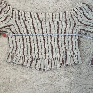 FREE PEOPLE Smock Around Sz S Off-Shoulder Ruffle Flowy crop Top